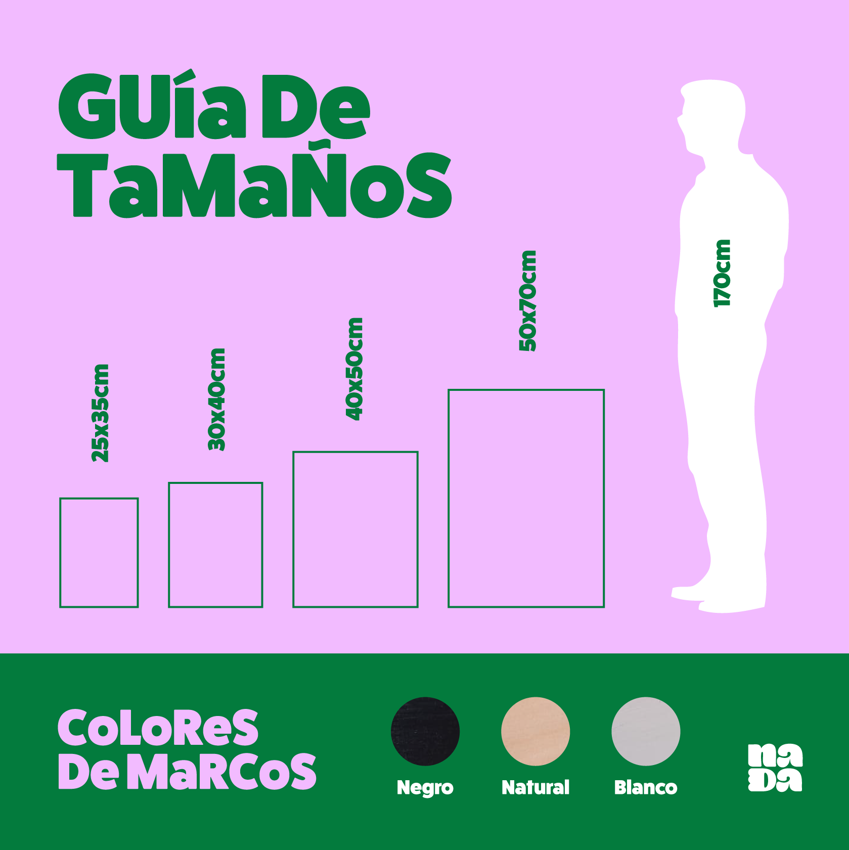 Medidas: 5 opciones diferentes, desde 25x35 cm hasta 50x70 cm. (Son medidas externas, incluyendo el marco. ¿Necesitás otro tamaño? Consultanos).